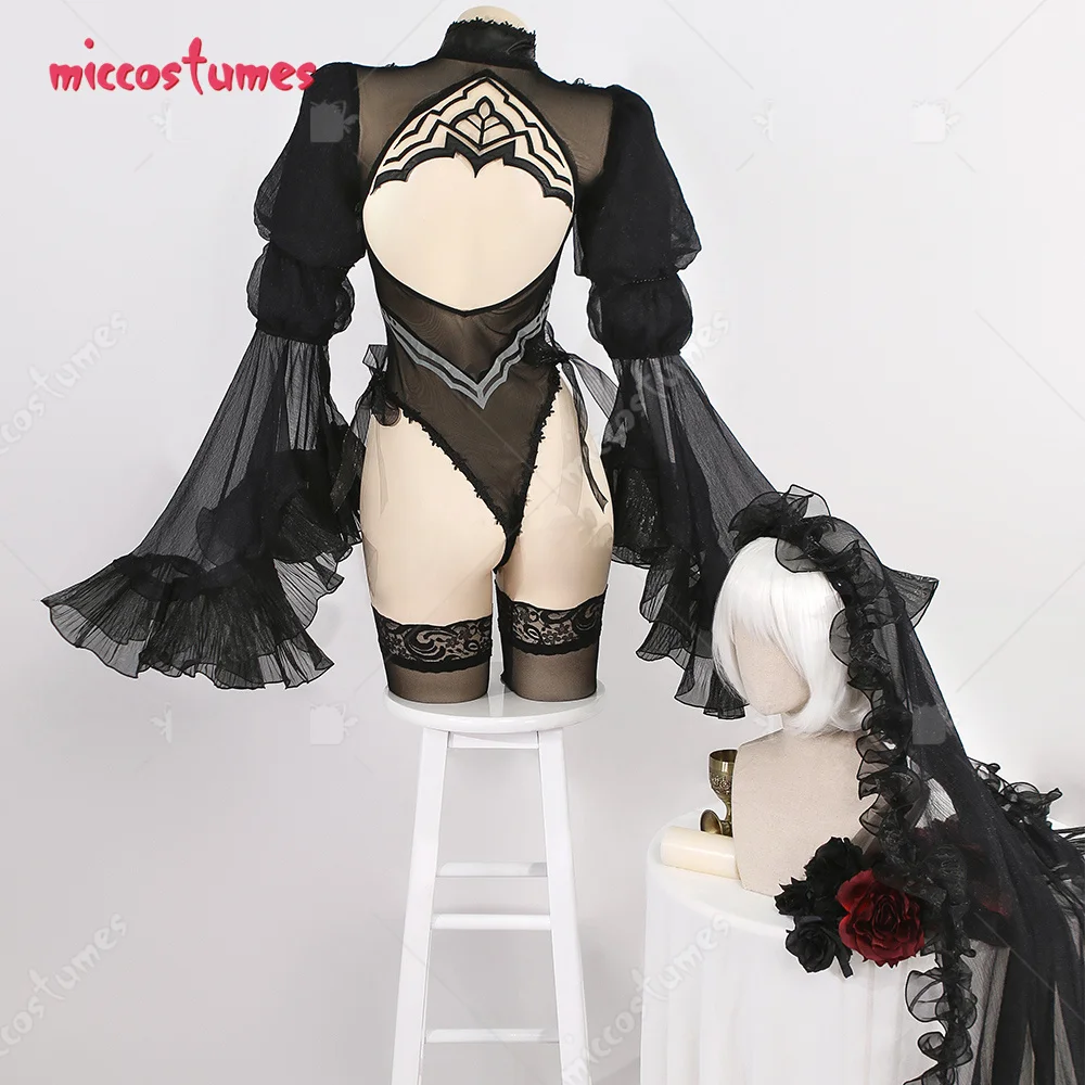 Miccostumes 2B White Black Wedding Dress 2B Bride Cosplay Costume
